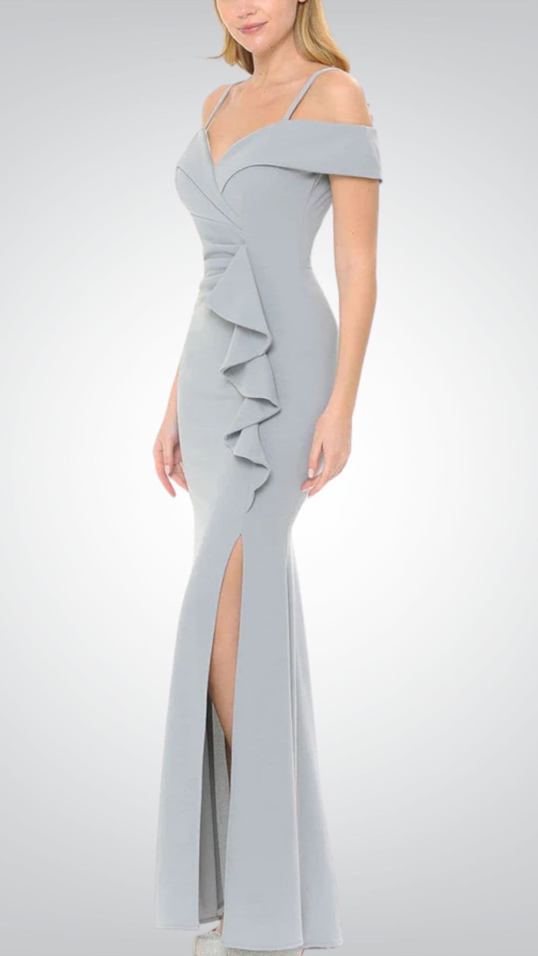 Formal Wedding Guest Dress With Cascading Side Ruffle