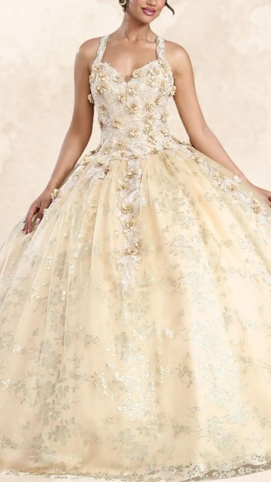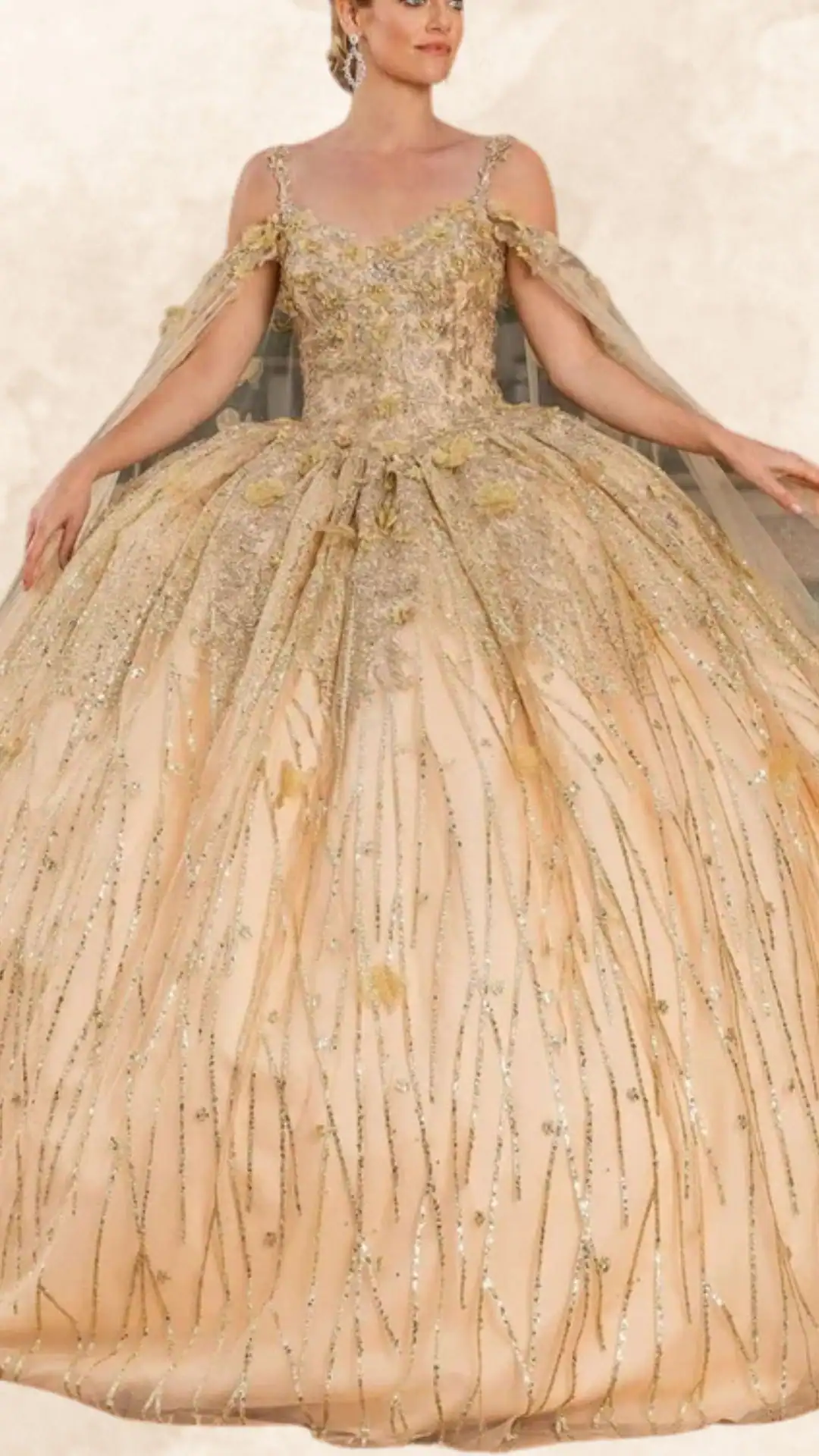 Stunning Gold Quinceañera Dress with Floral Embellishments