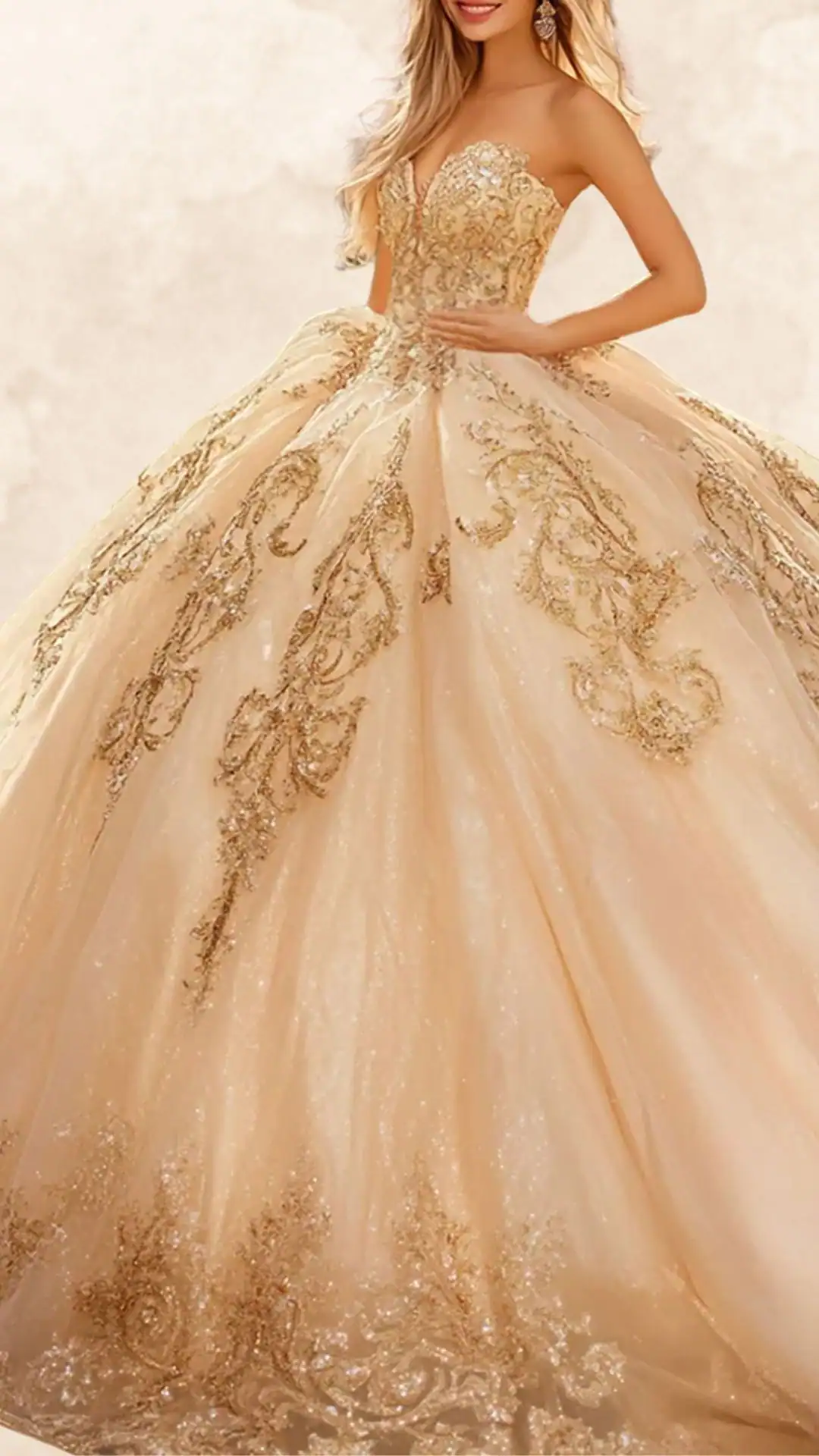 Whether you dream of a stunning gold ball gown, a sparkling rose gold creation, or a chic champagne look, this guide covers the most beautiful styles to suit every Sweet 15 or Sweet 16 celebration.