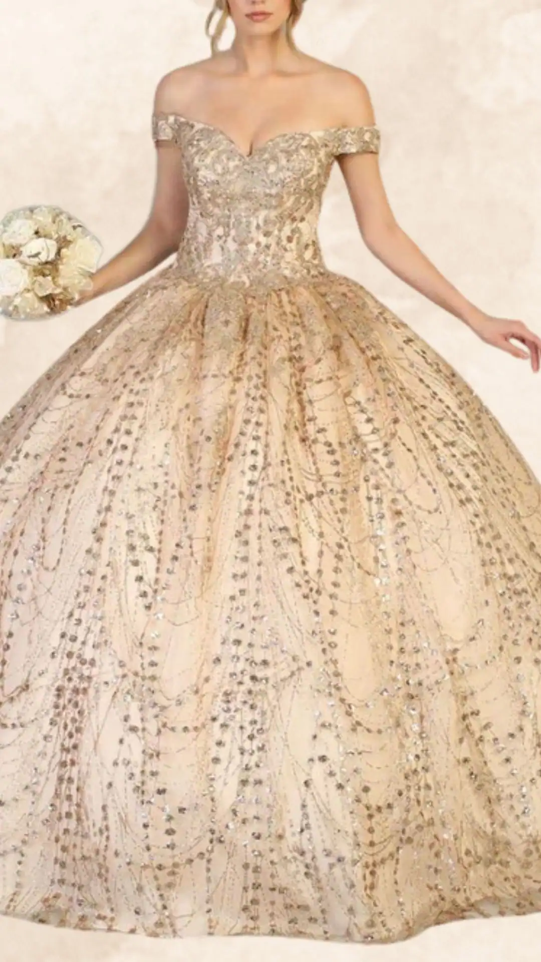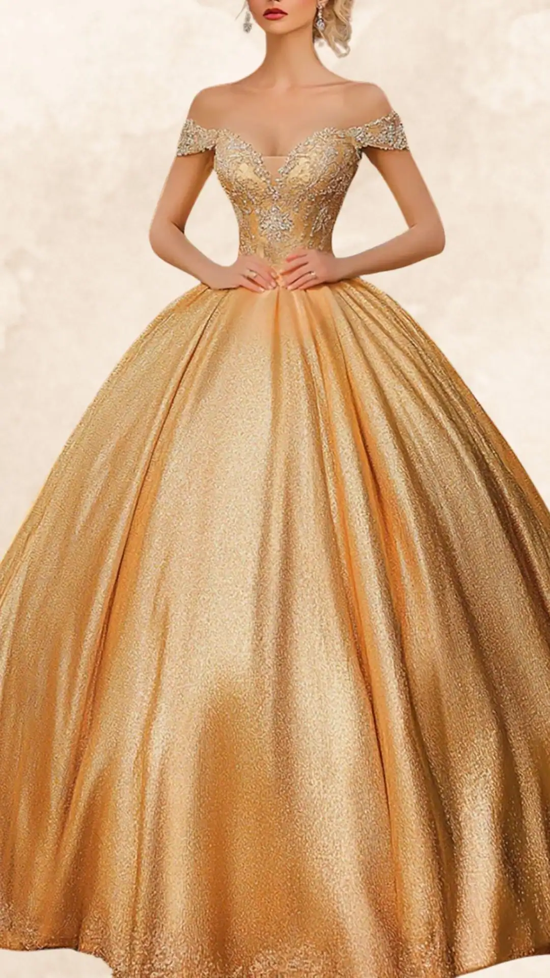 Stunning Gold Quinceañera Dress with Elegant Off-the-Shoulder Design