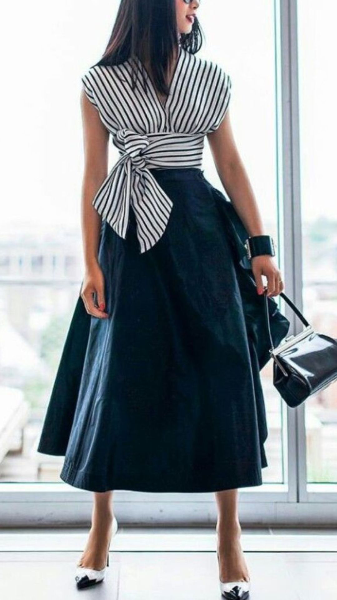 Play with unique silhouettes and cuts: Signature staples often stand out because of their shape or proportion. Experiment with different silhouettes to add interest: Try puff sleeves, asymmetric hems, or wrap dresses to break away from standard shapes. Swap your classic skinny jeans for flared or wide leg trousers. Look for skirts or dresses with pleats, volume or ruching to create visual interest.
